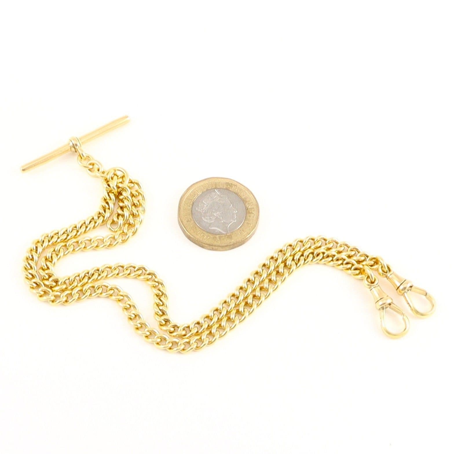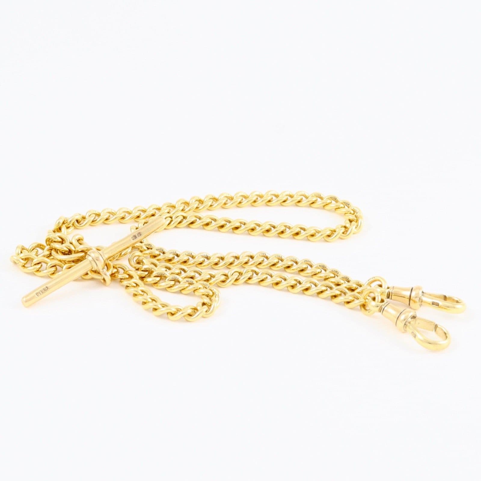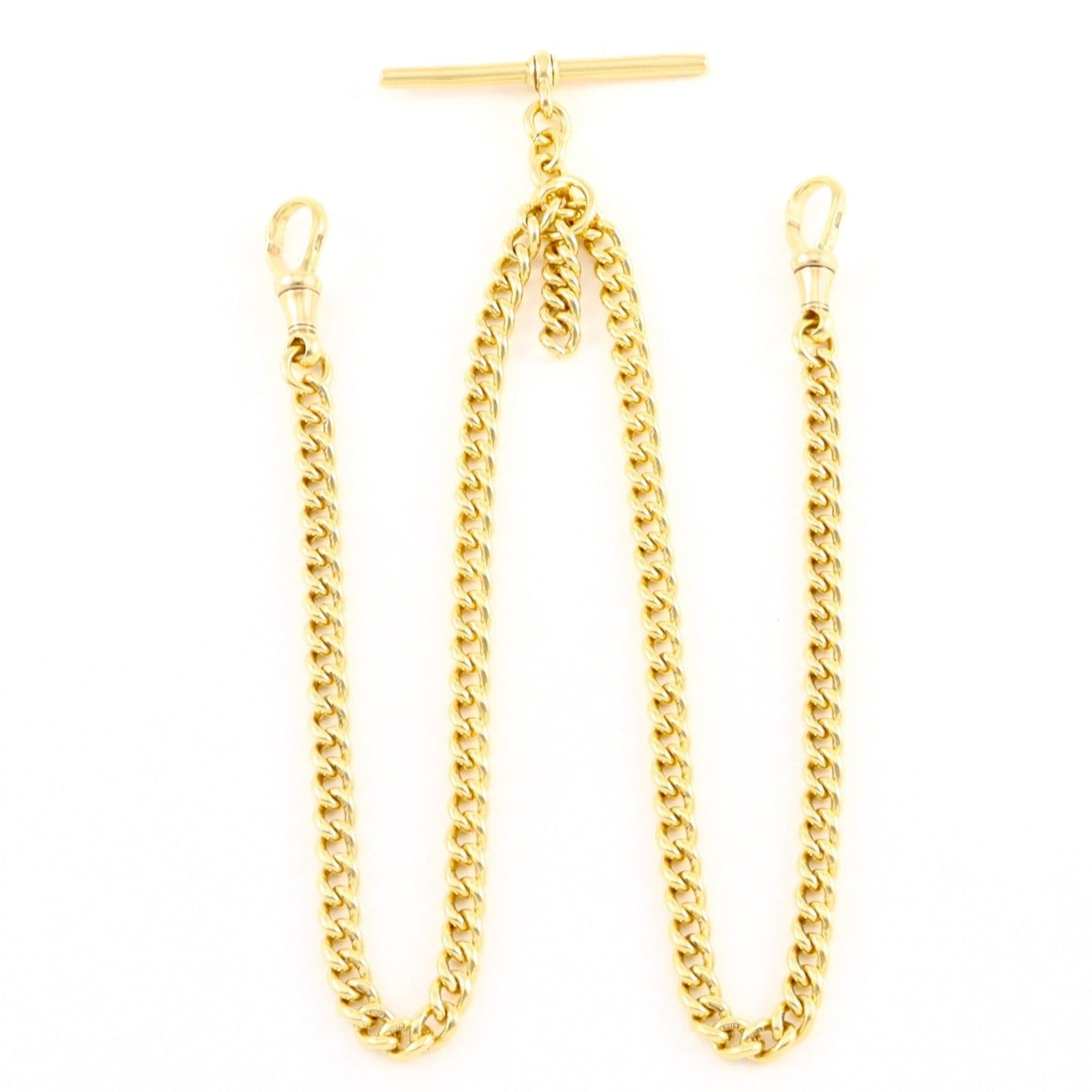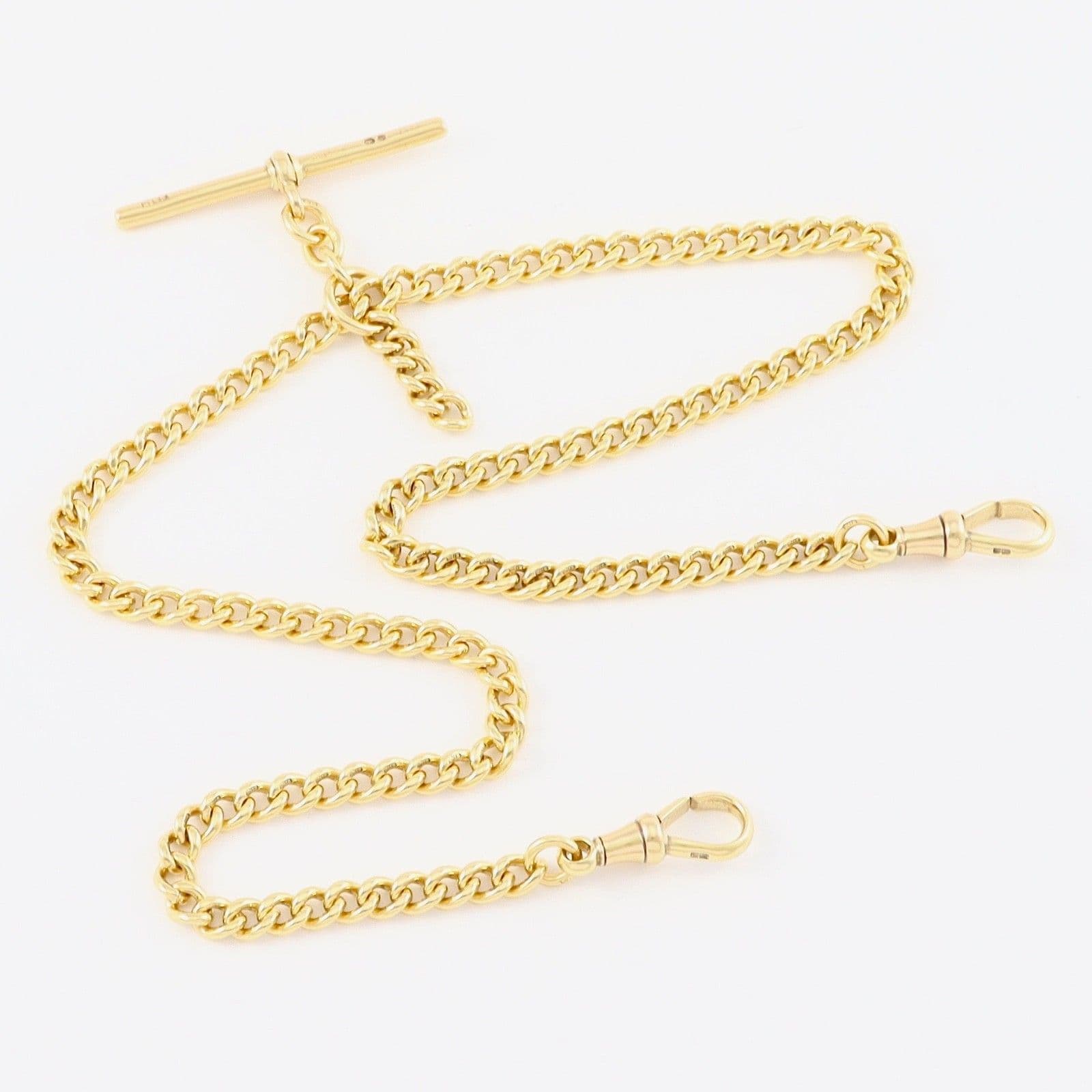 Antique solid 18 carat yellow gold curb link Albert watch chain with sliding T-bar.