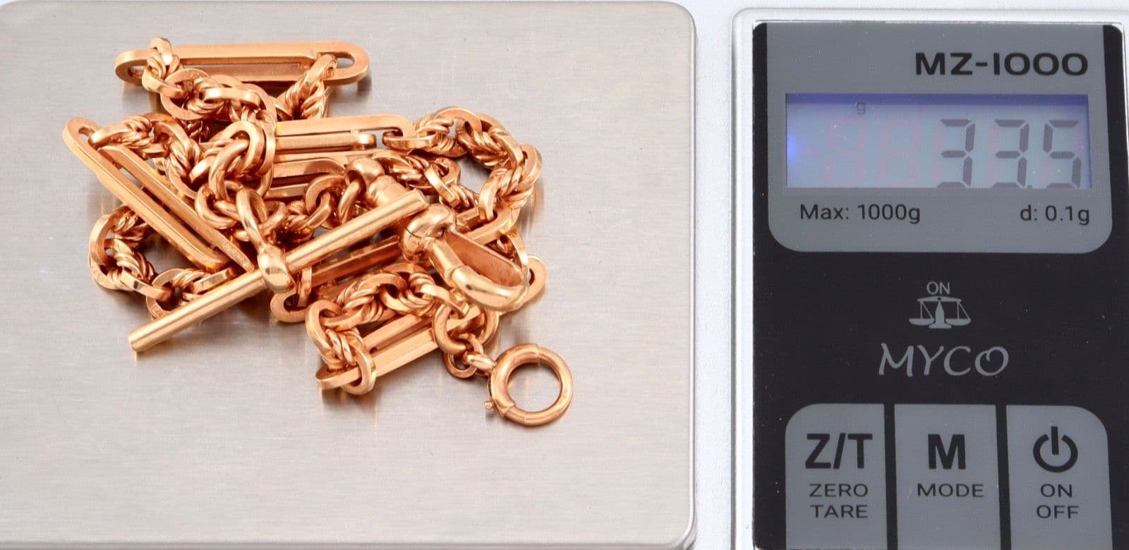 Antique 9Ct Gold 33.5g Trombone And Knot Link Double Albert Watch Chain 14 3/4''