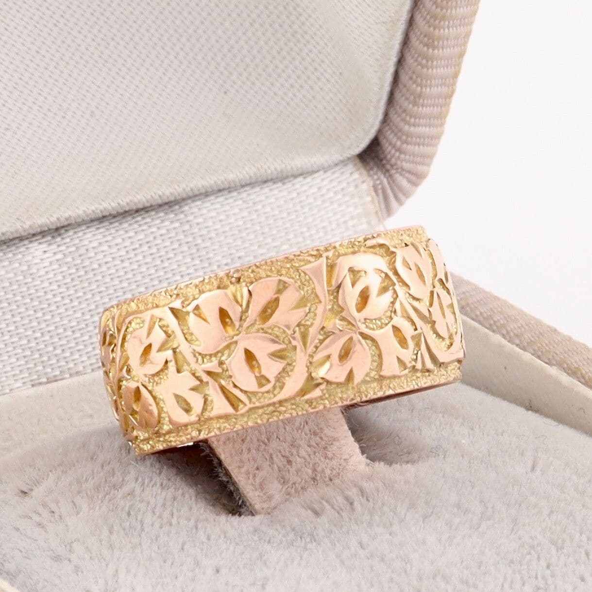 Antique 9Ct Gold 4.2g Floral Engraved Patterned Wedding Ring / Band