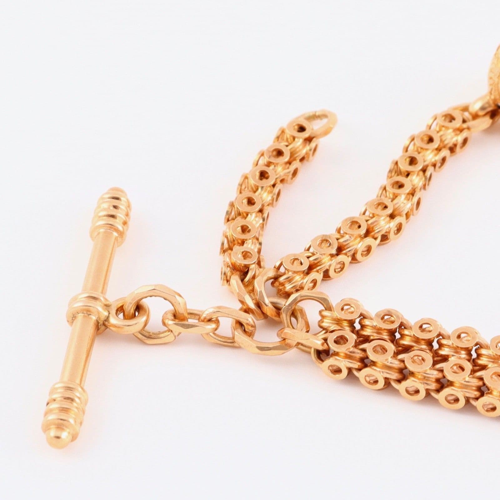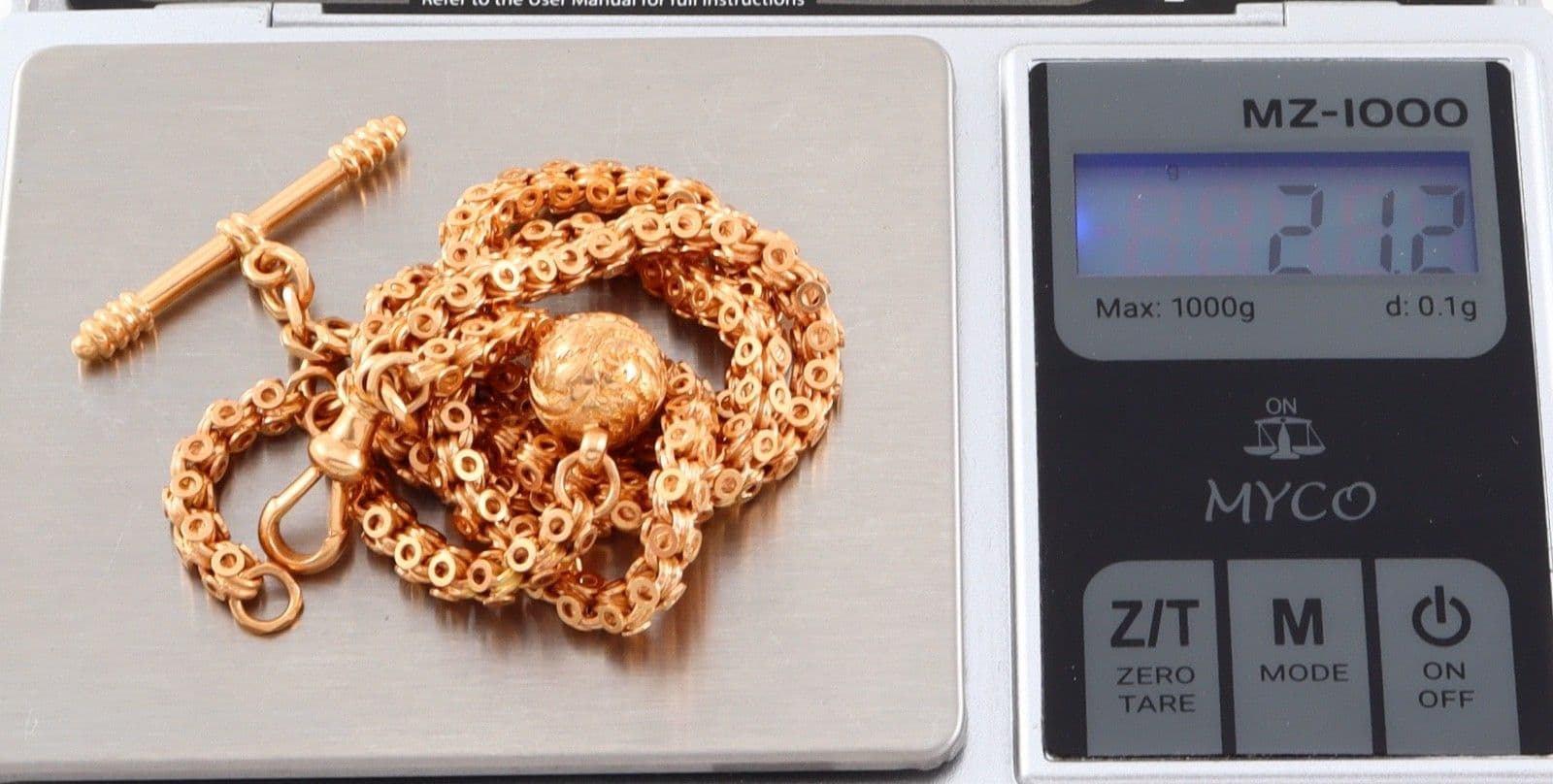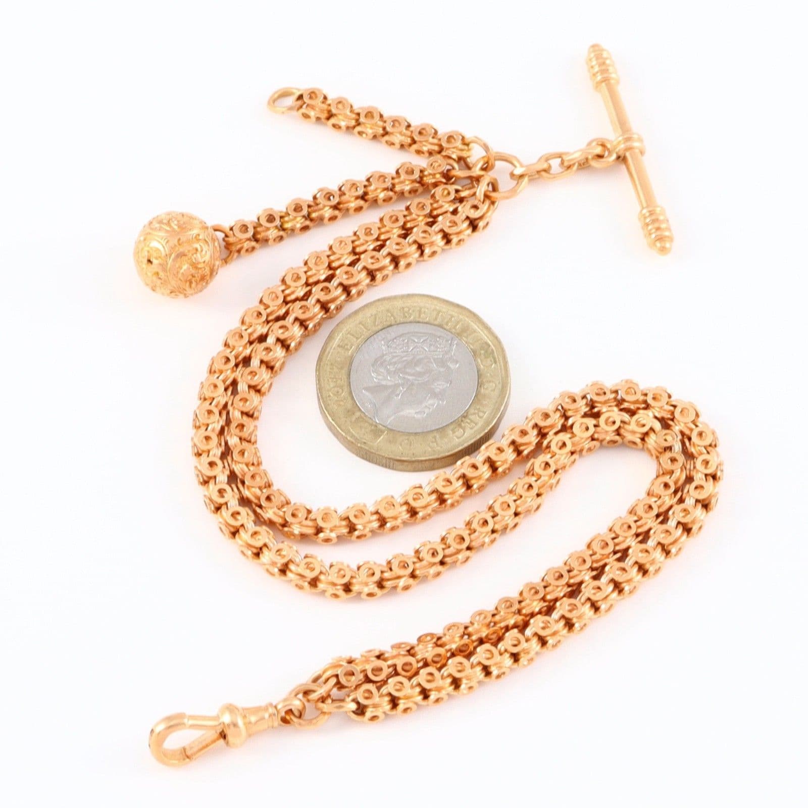 Antique 9Ct Rose Gold 21.2g Albertina Fob Watch Chain With Fob Ball
