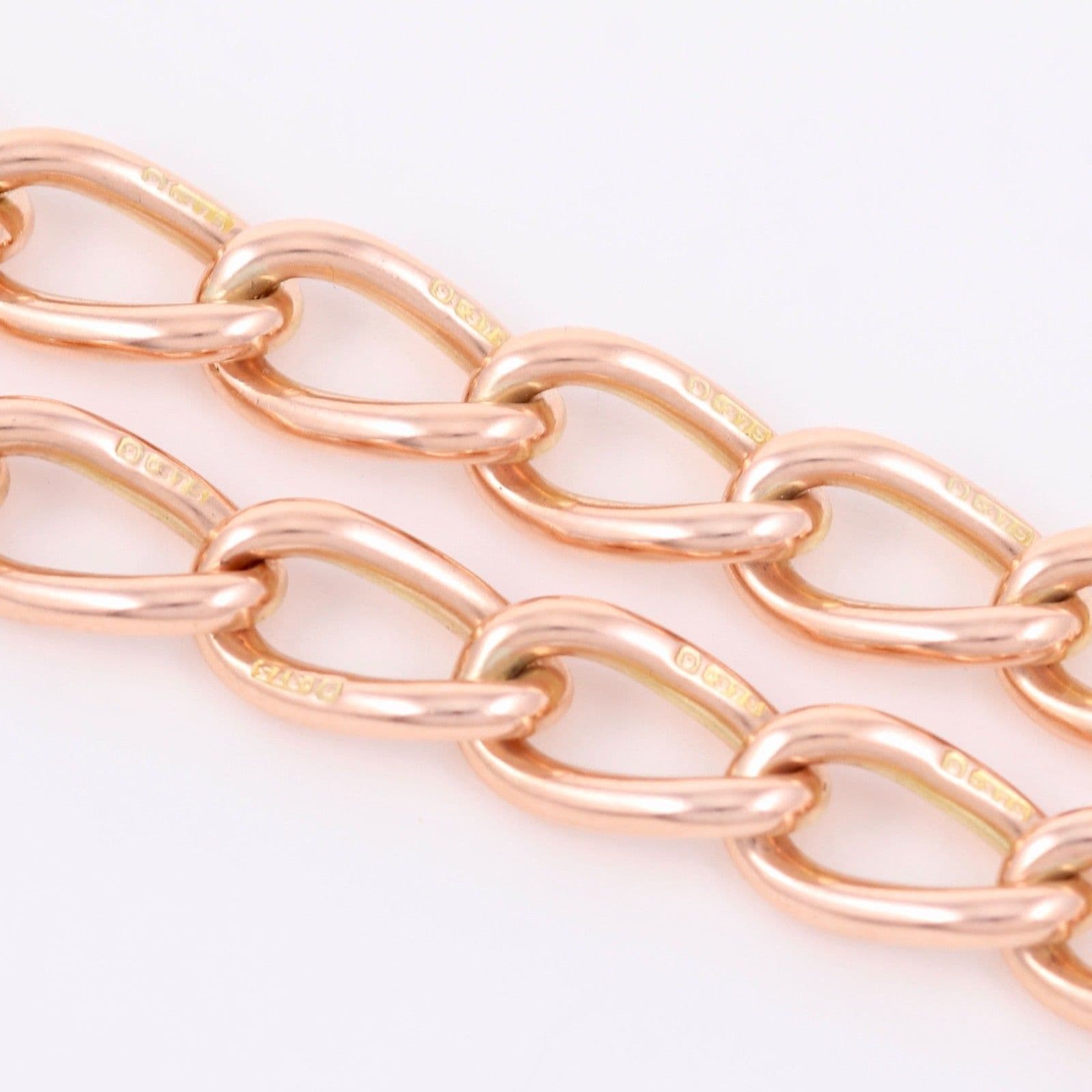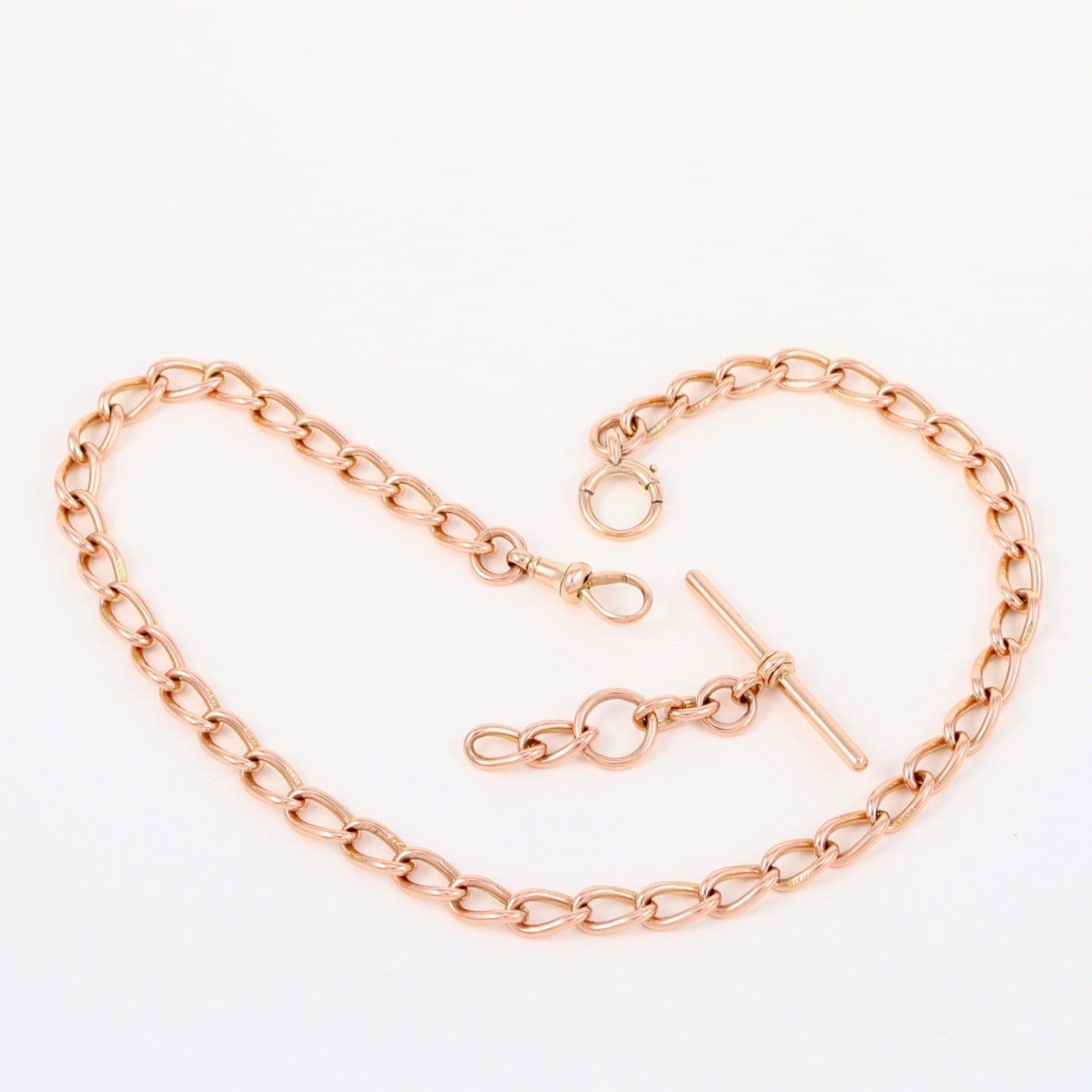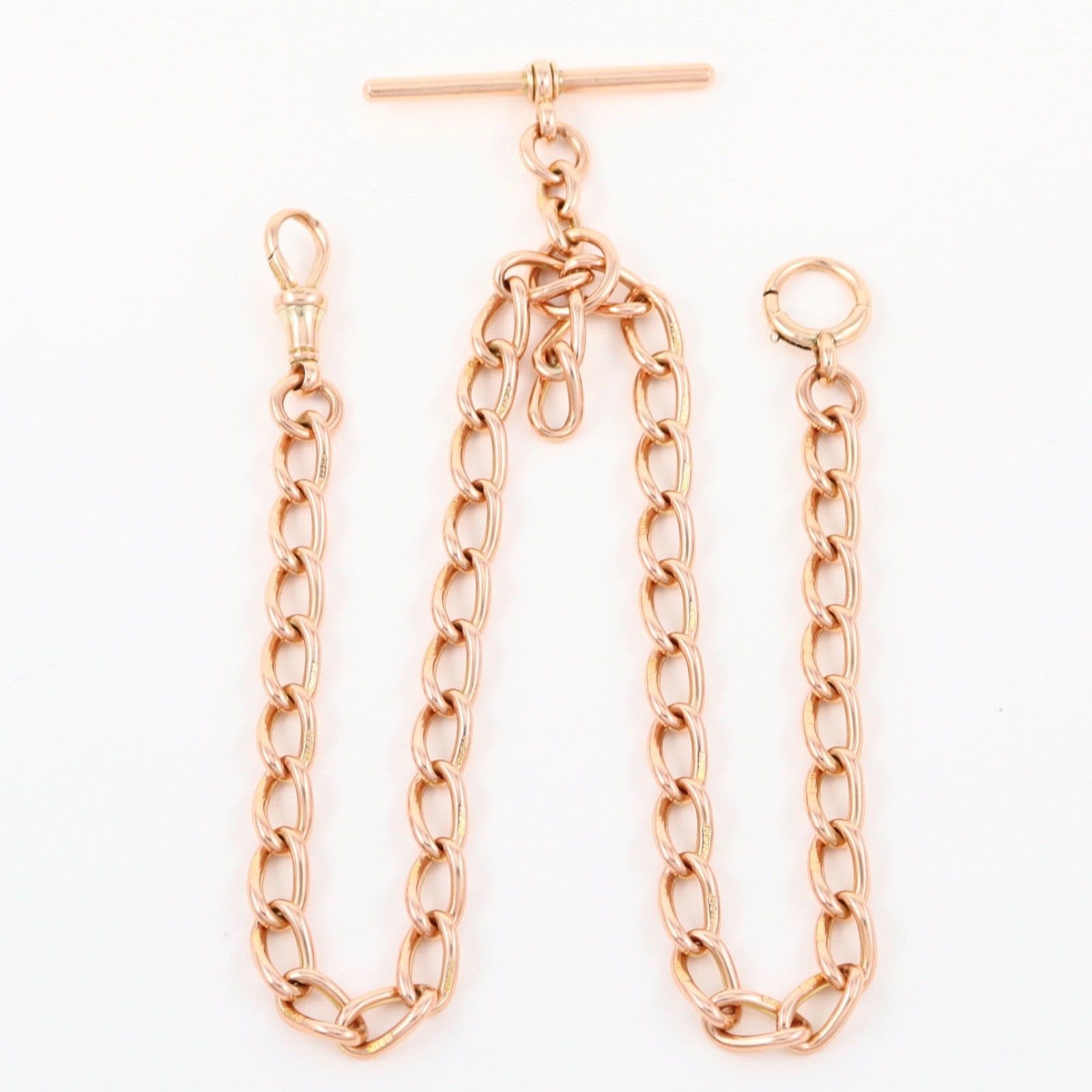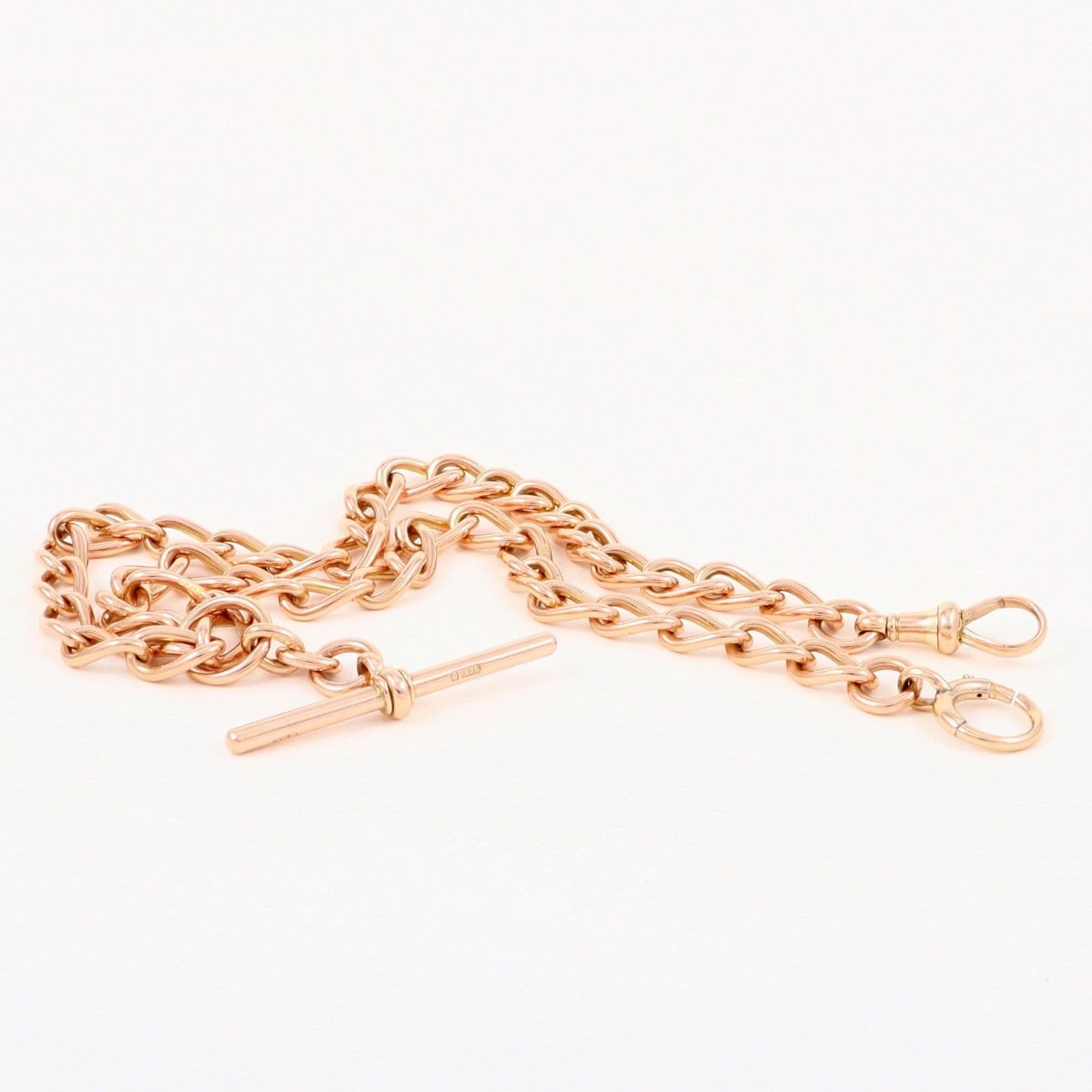 Antique solid 9 carat rose gold oval curb link double Albert watch chain.