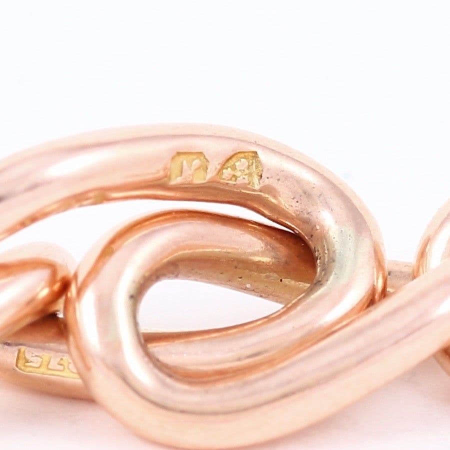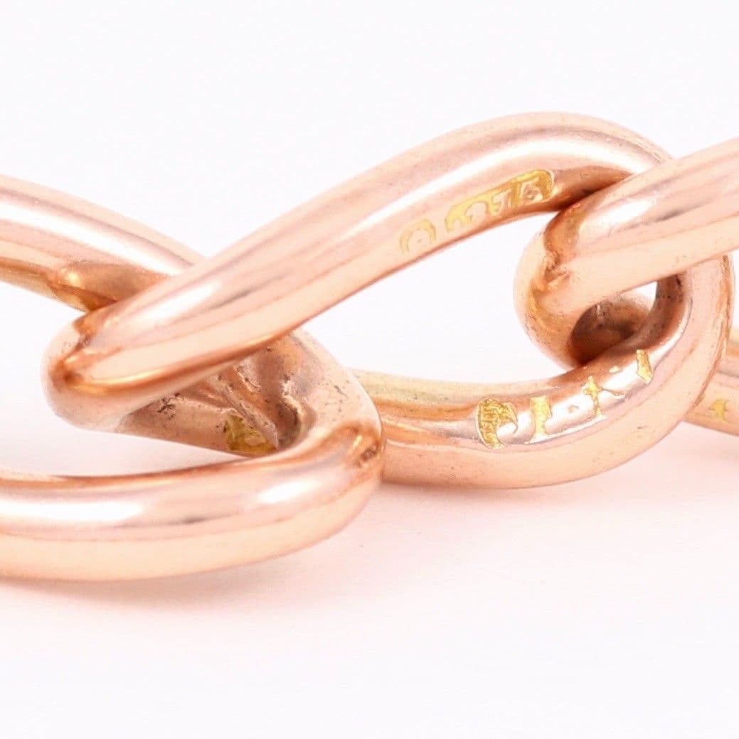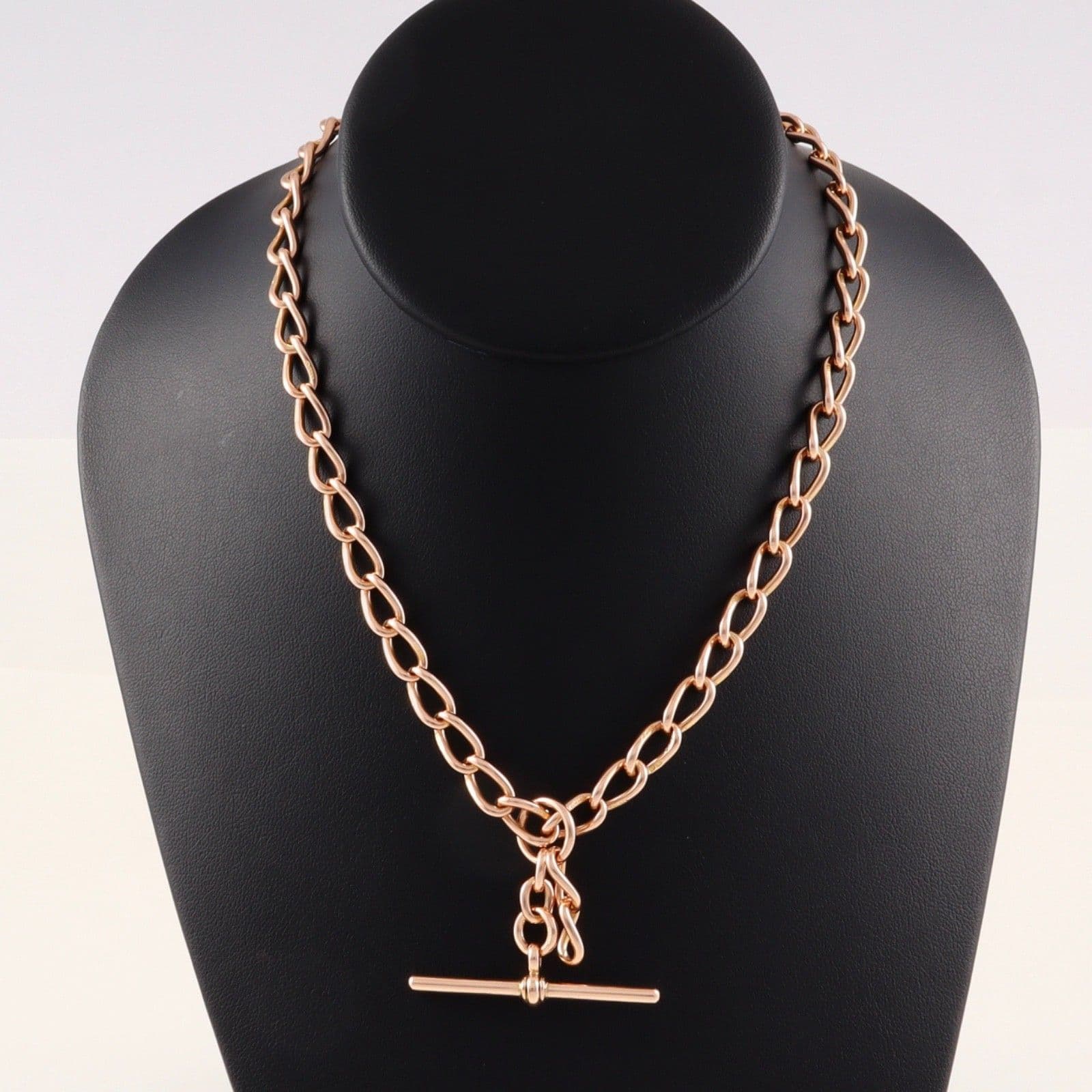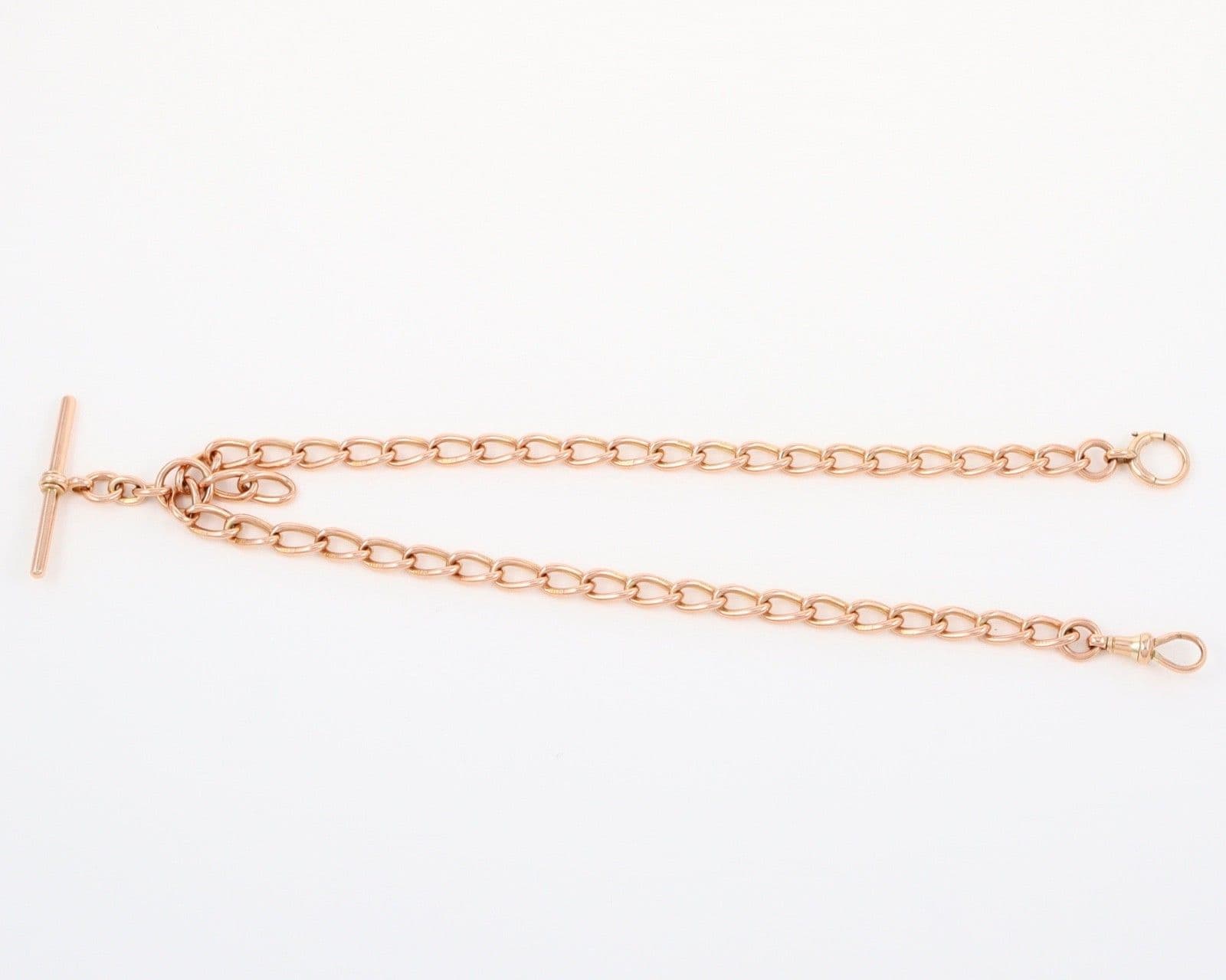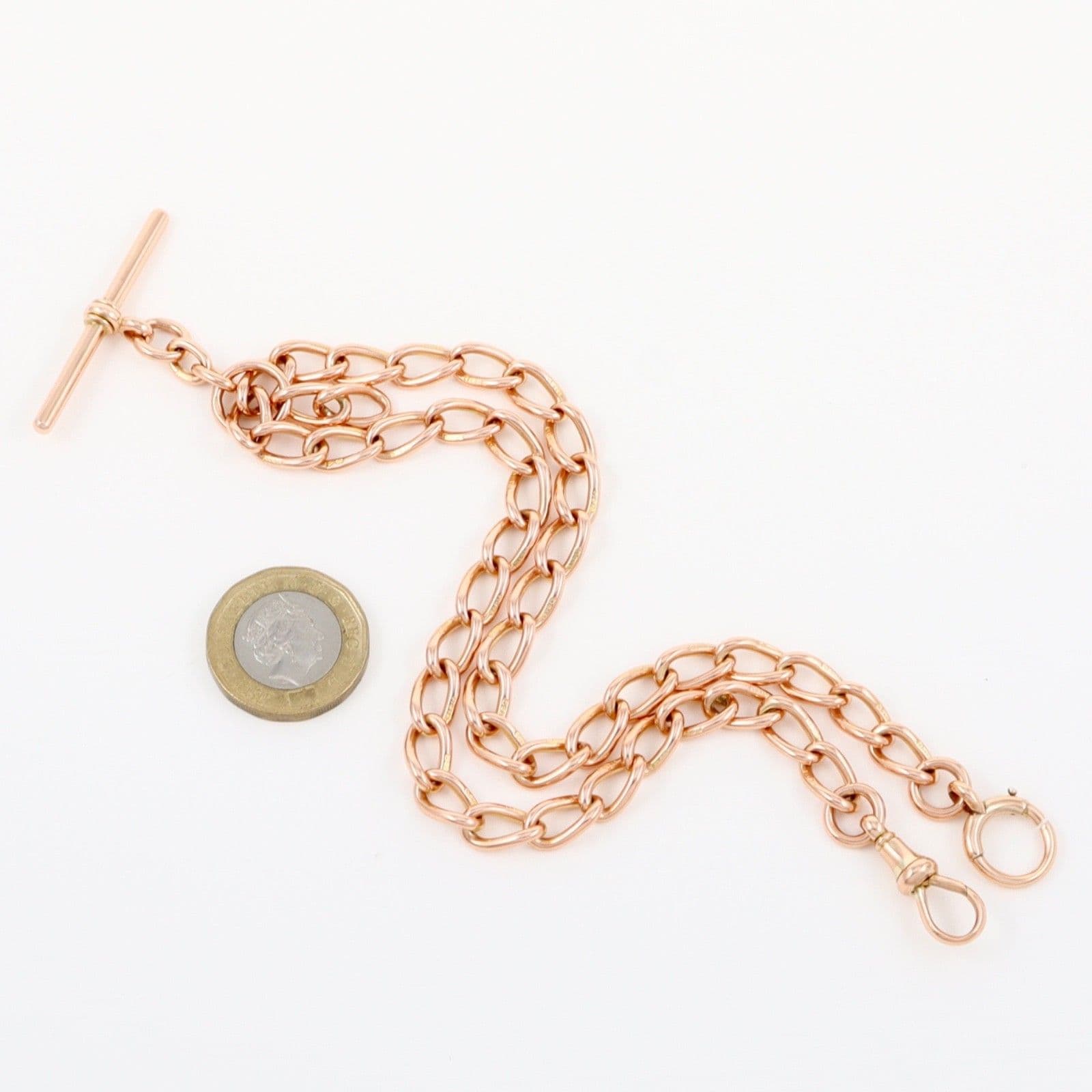Antique solid 9 carat rose gold oval curb link double Albert watch chain.