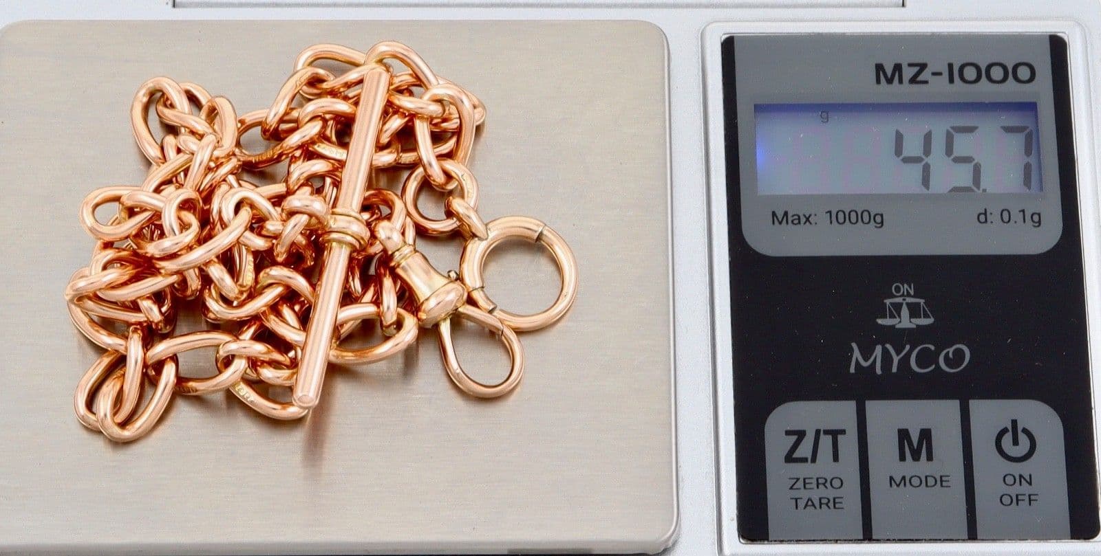 Antique 9Ct Rose Gold 45.7g Albert Watch Chain With T-Bar 16 1/2''
