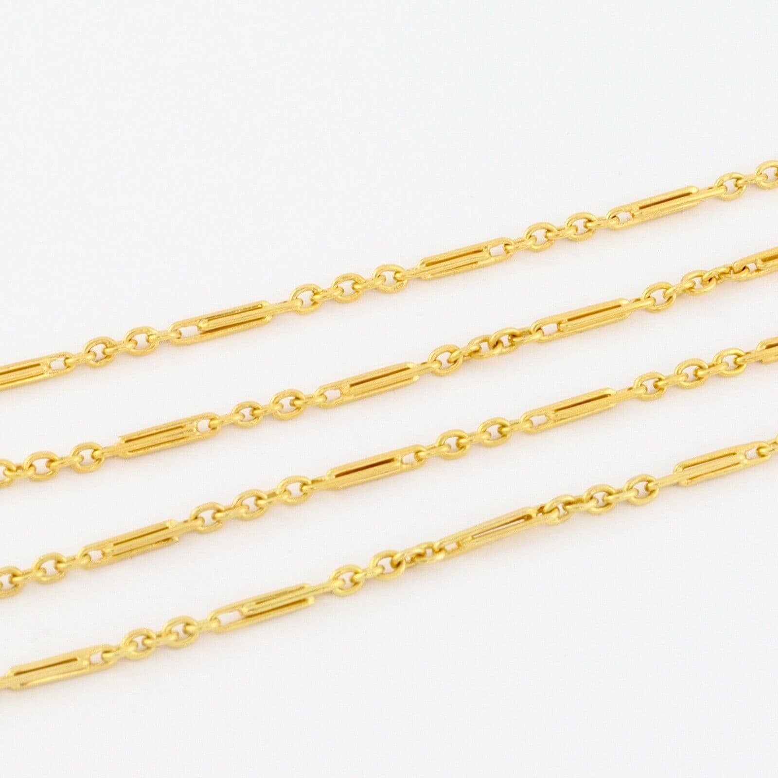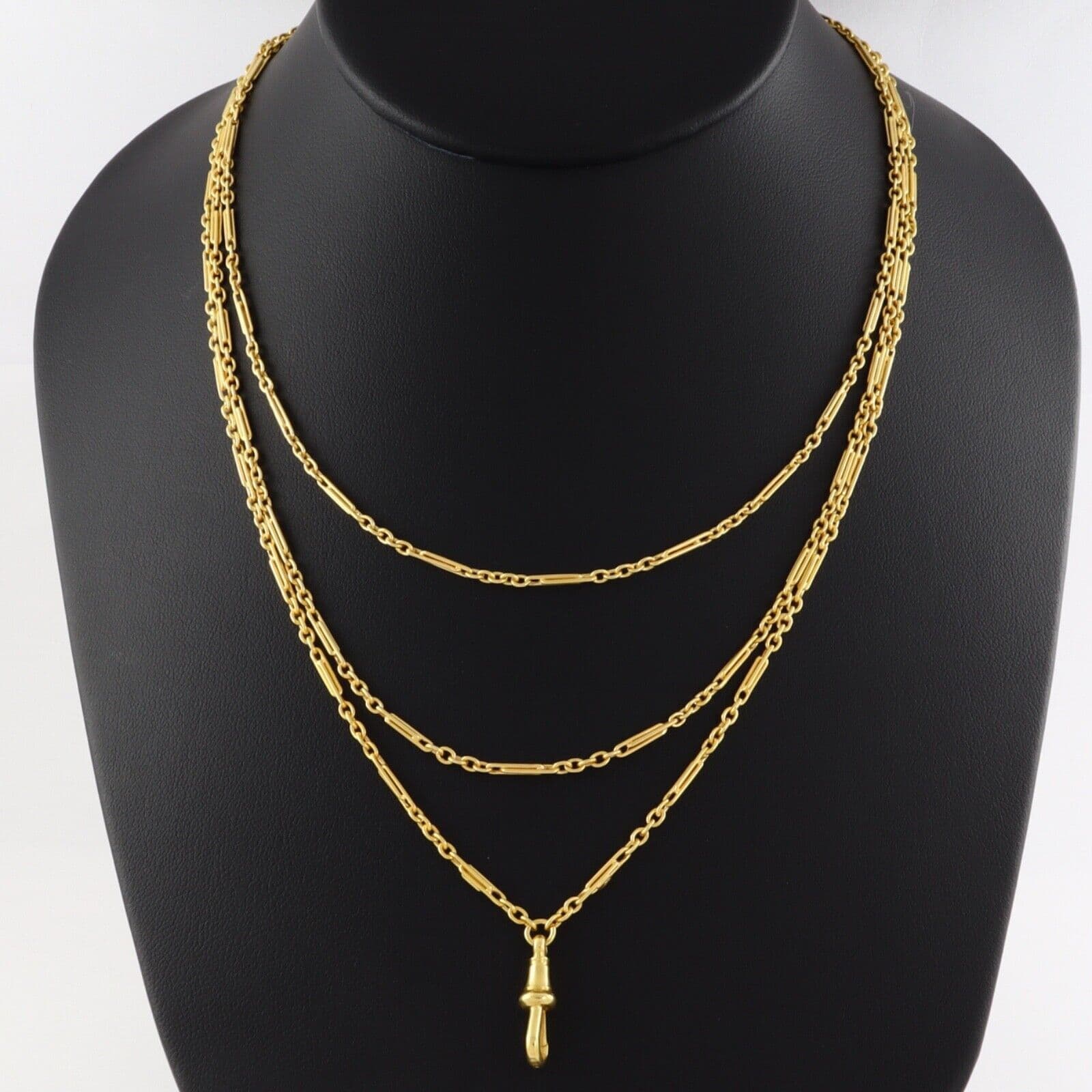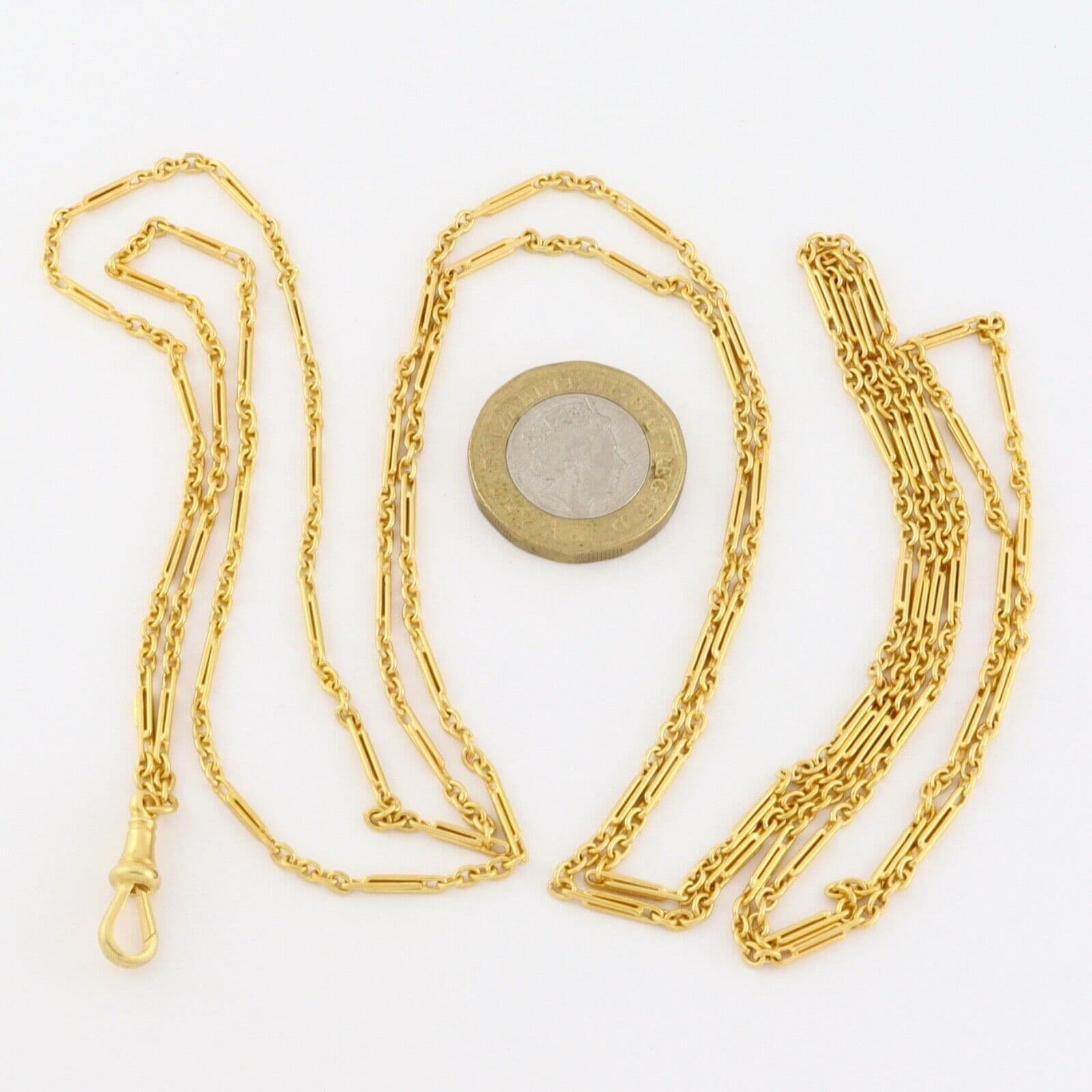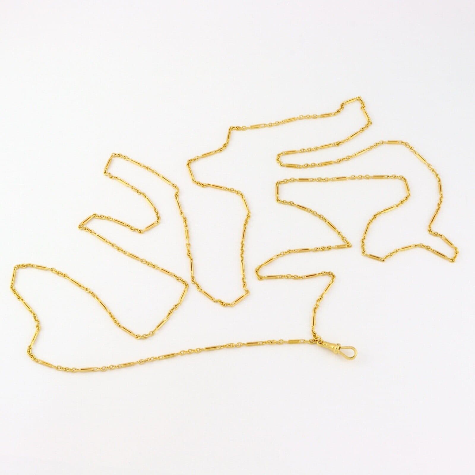 Long Antique 9Ct Yellow Gold Trombone Link Guard Chain Necklace 54''