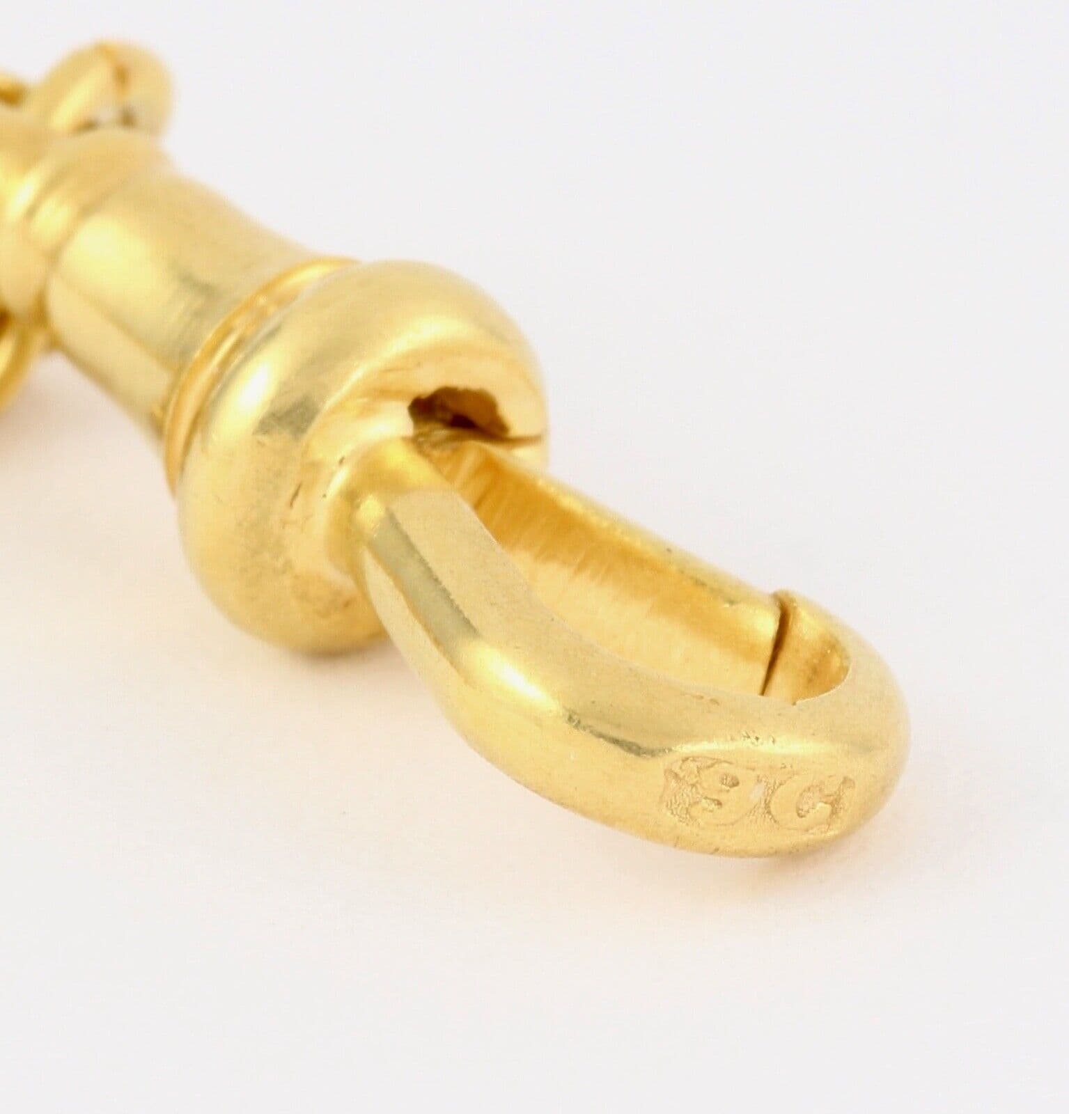 We have for sale this antique 9 carat yellow gold trombone and oval link guard watch chain necklace with dog clip c 1900's.