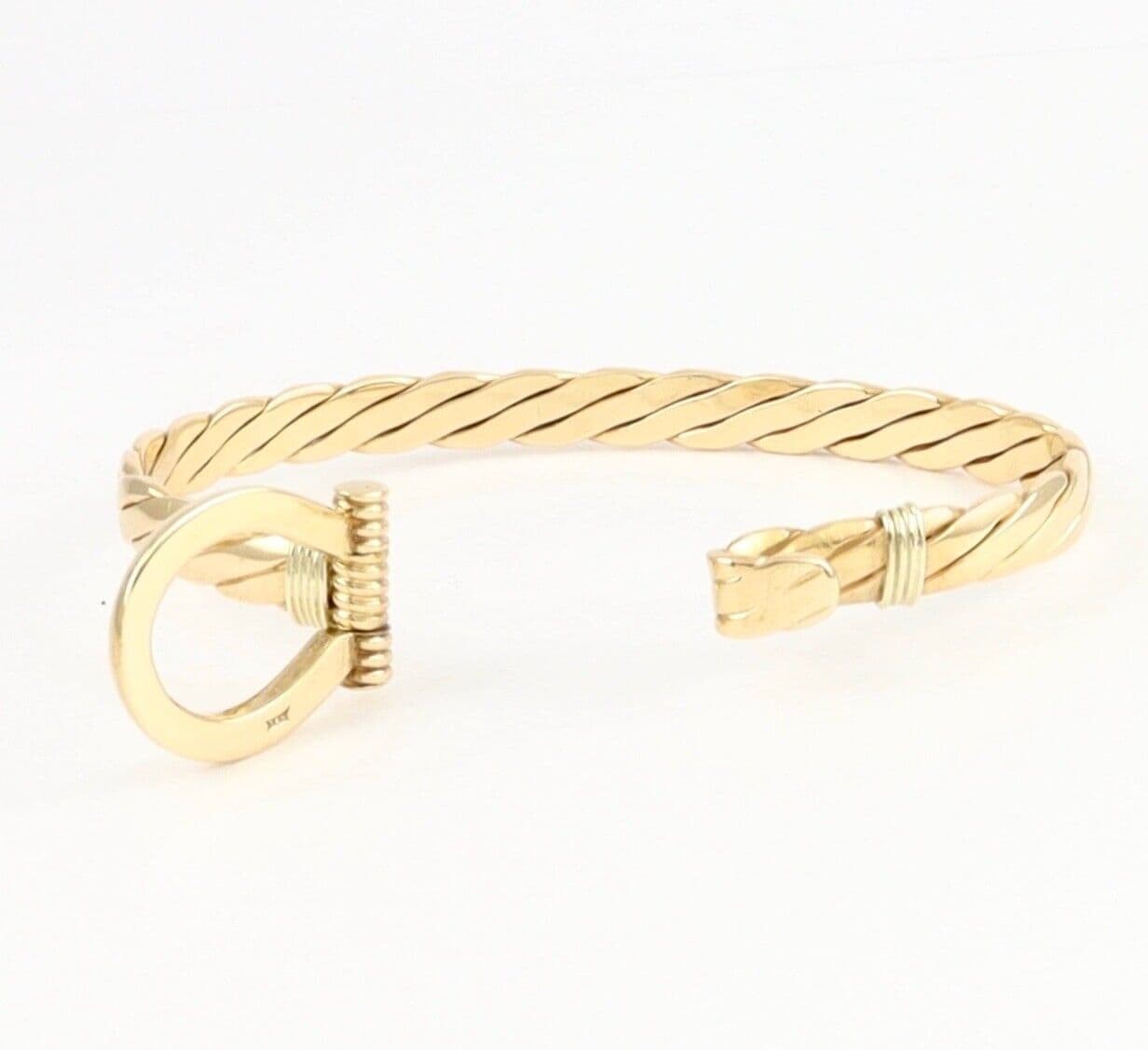 Vintage 9Ct Gold Tension Bangle / Bracelet With Hinge Hook Clasp 23g